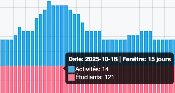 Un pic d'activité dans la partie haute peut être signe d'une suractivité passagère pour les étudiants.