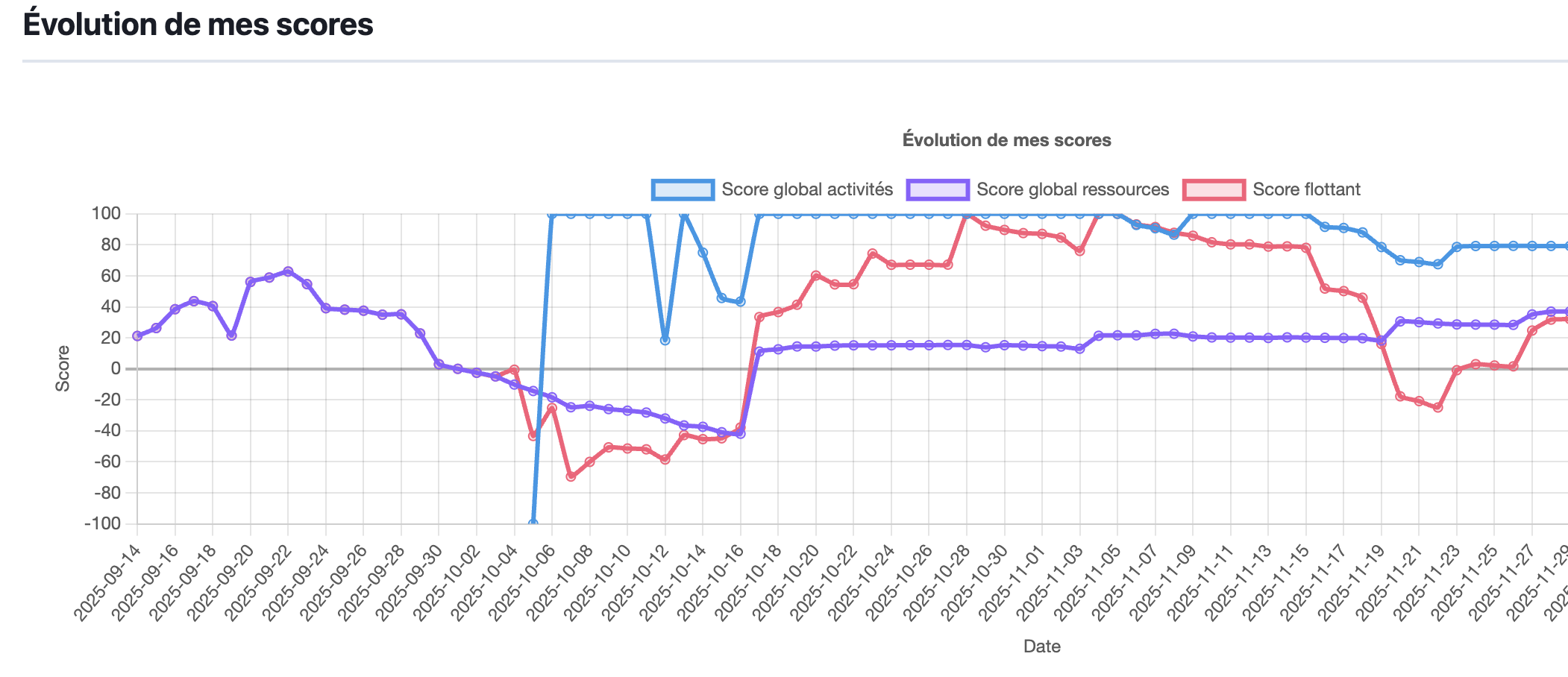 Quand le score flottant est faible, cela signifie que de nouvelles activités ou ressources sont disponibles et que vous ne les avez pas consultées.